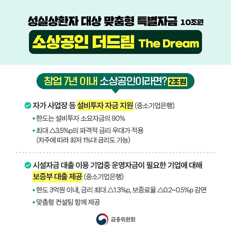 소상공인 더드림 패키지는 소상공인들에게 큰 도움이 되는 프로그램입니다. 사업 운영에 필요한 자금을 보다 쉽게 확보할 수 있는 기회를 제공하므로, 관심 있는 소상공인들은 꼭 신청해 보시기 바랍니다. 추가적인 정보는 관련 웹사이트나 금융기관을 통해 확인할 수 있습니다.