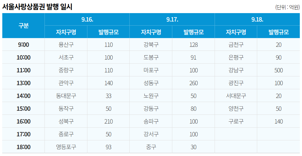 사울사랑상품권 발행일정은 아래와 같습니다.