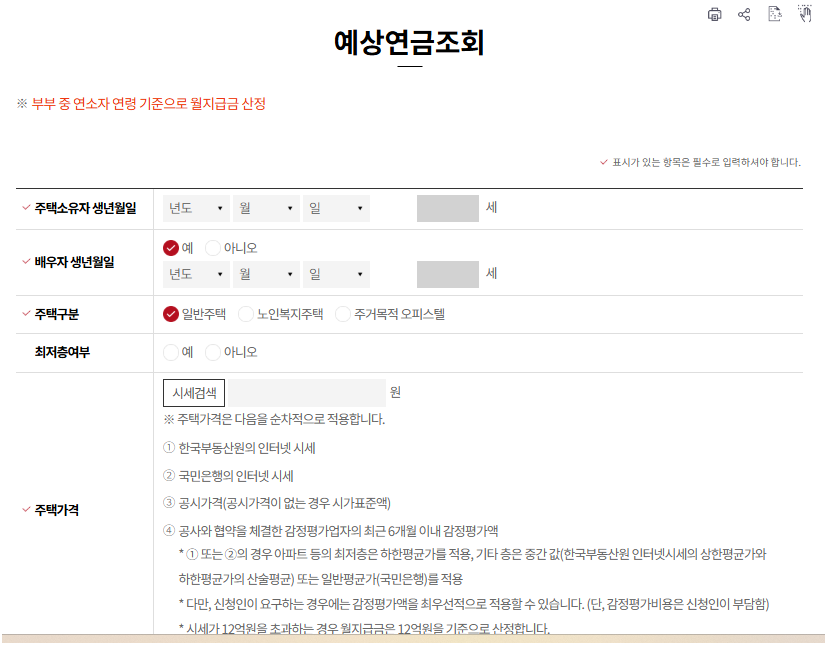 예상연금조회 | 주택연금 | 한국주택금융공사