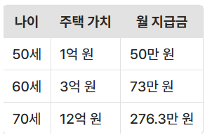 주택의 가치 – 집값이 높을수록 월 지급액이 커집니다. 5억 원짜리 집과 12억 원짜리 집은 지급액 차이가 상당합니다.