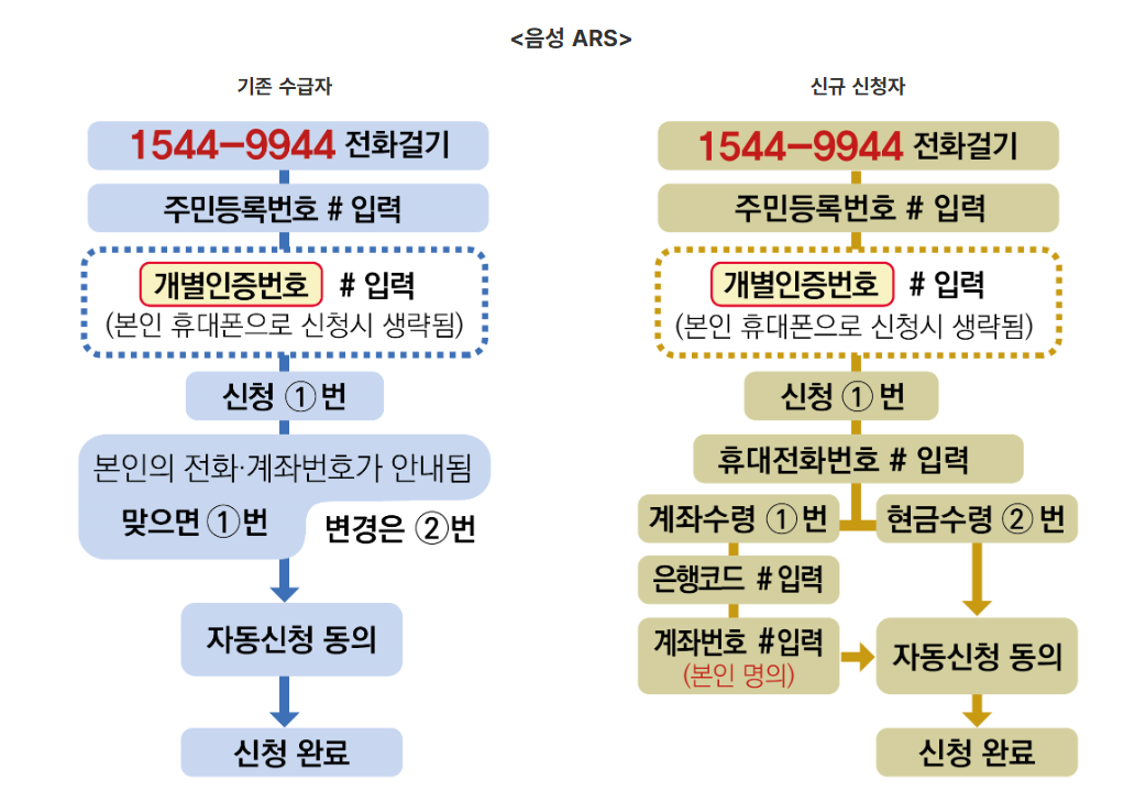 20분 정도면 충분히 끝났고, 처음 해본 저도 크게 헤매지 않았습니다. 혹시 컴퓨터 사용이 익숙하지 않은 분이라도 차근차근 따라가면 가능할 것 같다는 생각이 들었습니다. 인터넷 사용이 어려운 분들의 경우 ARS로도 신청이 가능합니다 아래 이미지 참조하세요