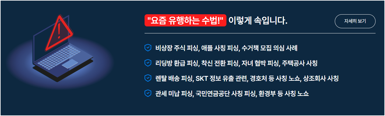 또한, 문자·전화를 통해 유포 중인 최신 피싱 수법도 간단하게 설명해주더군요. 아주 도움이 됐습니다.