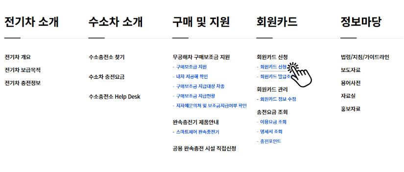 전기차를 새로 구매했거나 충전소 이용이 잦은 사용자에게는 단순히 선택이 아니라 운영비 절감과 편의성 향상이라는 두 마리 토끼를 잡는 전략이 될 수 있습니다.(아래 이미지를 누르시면 환경부 회원카드 신청 사이트로 바로 이동가능합니다.)