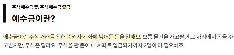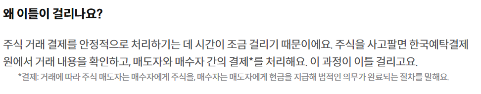 주식 매도후 입금일 - 바로 돈이 안 들어오는 이유
