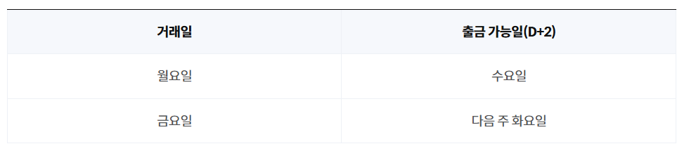 금요일 매도 → 다음 주 화요일 오후 4시 이후 인출 가능