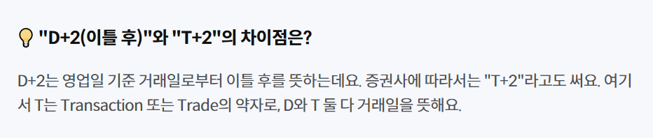 즉, 매도일로부터 2거래일 뒤에 실제로 돈이 계좌에 들어오는 구조죠.