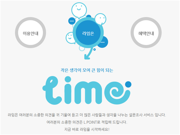 모두의 생각을 모아 함께 나누는 공간, 라임! 설문 참여만 해도 L.POINT가 팍팍 쌓이는 라임, 지금 시작하세요!